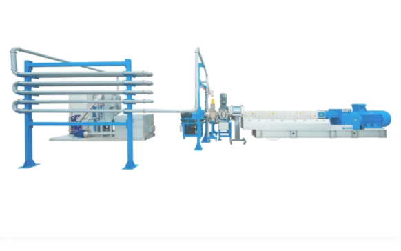 與其他切粒方式相比,水下壓實度更高,產量大時尤為明顯。最終顆粒的大小也可以得到更好的控制。該系統由熔體泵、過濾器、開車閥、模頭、水下切粒機、水循環系統、脫水系統組成。